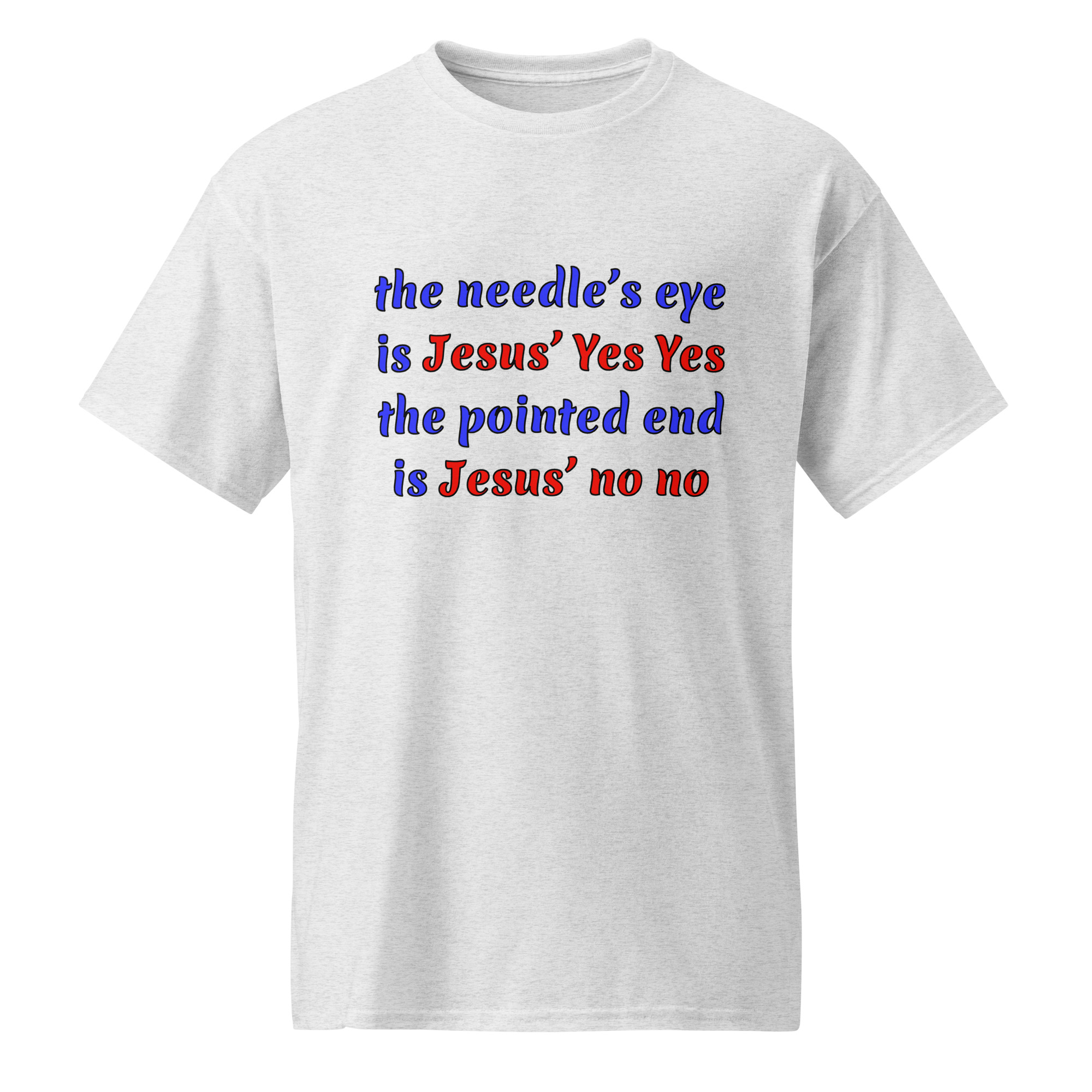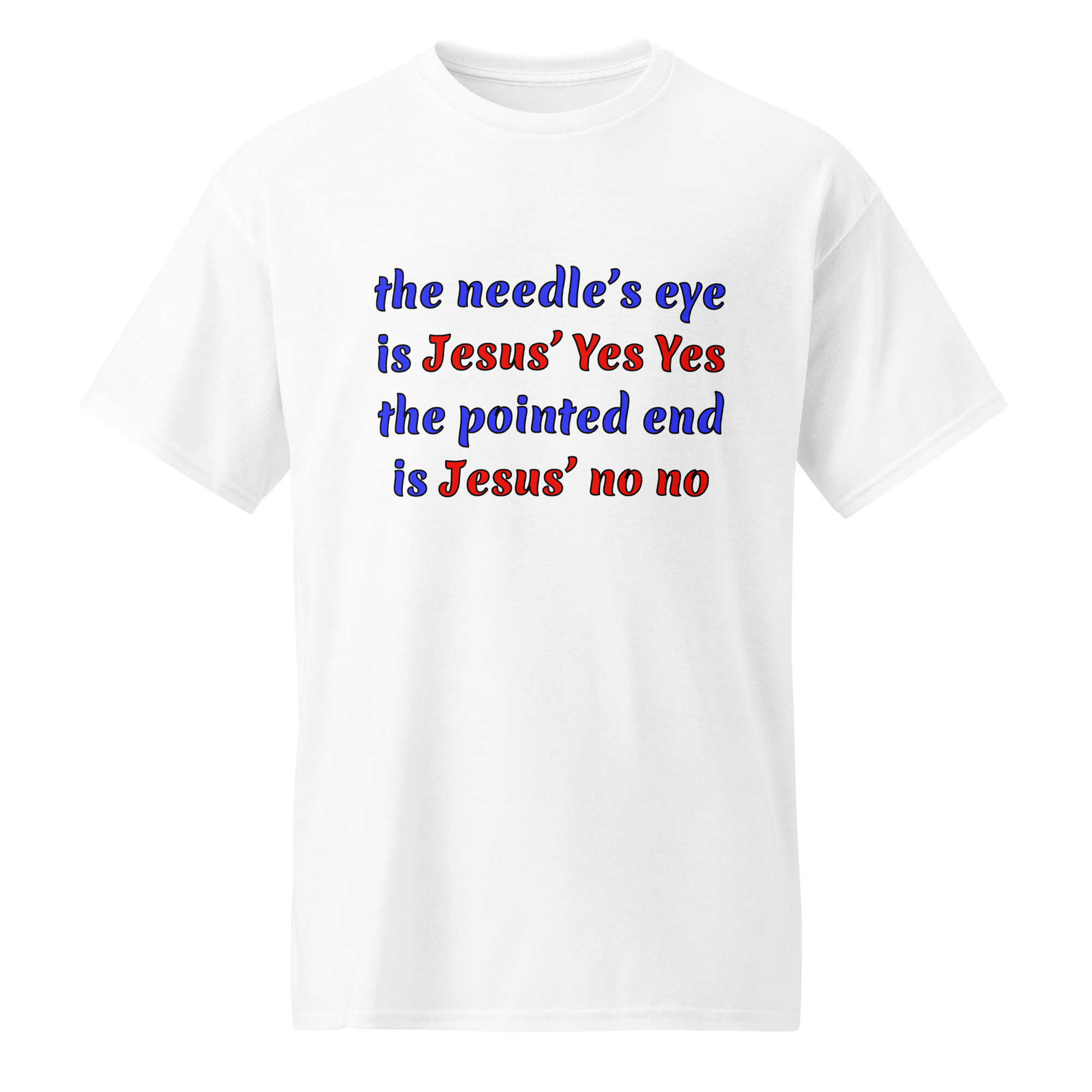 needle’s eye is Jesus’ Yes Yes white cotton t-shirt